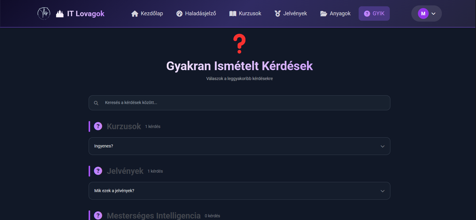 "Az IT Lovagok TudásKözpontja egy teljesen egyedi, moduláris LMS rendszer, amelyet egy fantasztikus nonprofit csapattal közösen építettünk. A rendszerben a kurzuskezelés, vizsgáztatás, jelvényrendszer, dokumentumtár és GYIK is megtalálható - mindezt egy elegáns, asztali környezetet idéző felületen. Külön köszönet az Informatika Határok Nélkül Egyesület elnökének, aki végig lelkesen tesztelt és ötletelt!" 🏰
